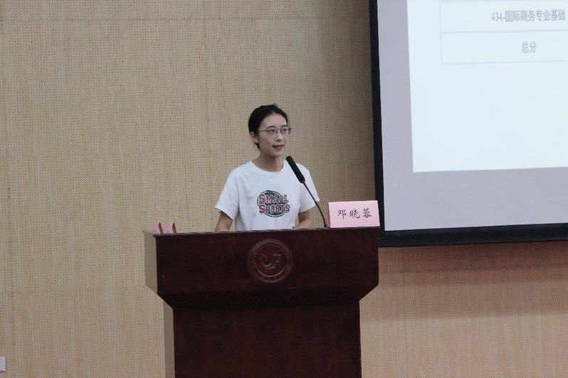 邓晓蓉同学上岸南开大学,她结合自己的实际经历,向同学们分享了自己在90天内重新换学校及调整备考状态的经历。她讲到,好的备考状态源于前期扎实的学习、后期的按部就班以及初心和勇毅的加持,并鼓励大家高度重视、科学规划,坦然面对人生路上不确定的因素。