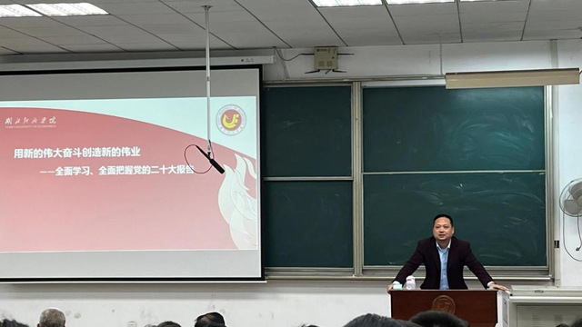 关于大会主题,付宏教授指出,我们要提高思想觉悟,坚定不移地“高举中国特色社会主义伟大旗帜,全面贯彻新时代中国特色社会主义思想”;保持高昂的精神状态,毫不动摇地“弘扬伟大建党精神,自信自强、守正创新,踔厉奋发、勇毅前行”;明确奋斗目标,矢志不渝地“为全面建设社会主义现代化国家、全面推进中华民族伟大复兴而团结奋斗”。