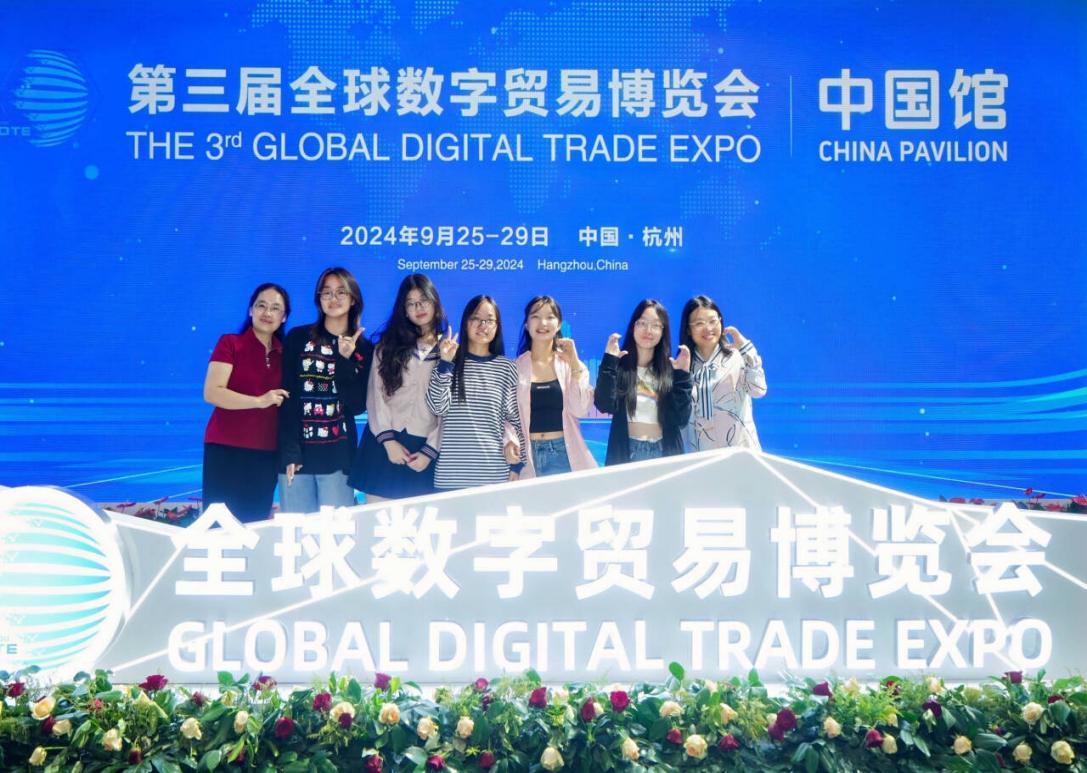 比赛同期,大赛组委会更是精心组织策划,与第三届全球数字贸易博览会同步举办跨境电商企业对接会和“丝路电商日:千名老员工共享数贸会”逛展打卡活动,将人工智能、大数据融入数字贸易大赛这一引擎,推动新一轮科技革命、学科交叉融合发展与自主知识体系构建,实现了教育、科技、人才一体部署。参赛同学怀着激动的心情参观了本届数字贸易博览会,在这场数字贸易的盛宴中,大家大开眼界,汲取着前沿的行业知识和创新理念。