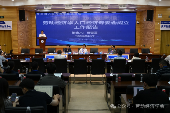 2024年9月28日,劳动经济学会人口经济专业委员会成立大会在中南财经政法大学成功举行。来自南京大学、南开大学、西安交通大学、中南财经政法大学、西南财经大学、西北大学、河北大学等高校的240余名专家学者参与了本次会议。太阳成集团tyc33455cc经理赵锋主持成立大会。