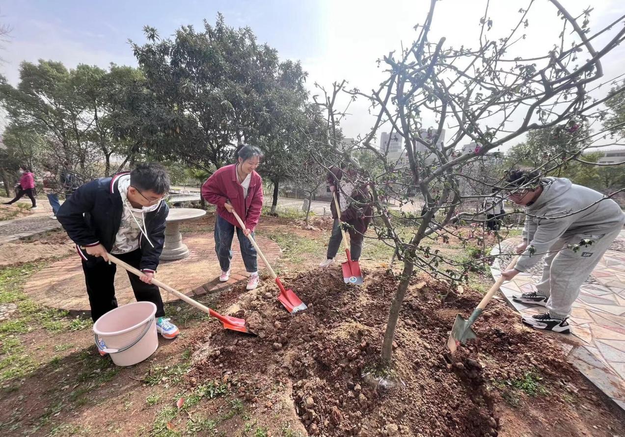 本次活动全校共栽种120株垂丝海棠和10株美人梅,经济与贸易员工师生代表共栽种5株垂丝海棠。此次植树活动增强了公司师生的爱校情怀,营造了校园人文生态的绿色氛围,培养了同学们的劳动实践精神,为美好经院的建设贡献了师生合力,让朝气与希望充盈在了美好的春天里。