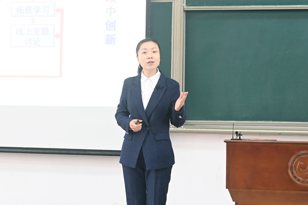 王琼老师的参赛课程是宏观经济学。其从学情特征、学科特性和时代要求三个方面总结出该课程的思政目标主线是“经世济民”,并进一步细分为四大思政主题。该课程聚焦中国元素来挖掘思政资源,借助教学创新来实现思政元素的隐性融入。在授课环节,王琼老师展示了“失业及其类型”这个知识点在教学中是如何实现思政融入的。其通过讲授我国失业率统计指标的科学调整,来使员工认识到中国特色劳动经济理论的不断完善。通过周期性失业、结构性失业的案例研讨,使员工感知中国政府促进就业的积极努力和取得的成效,坚定“四个自信”;同时也使其感悟到当前形势和未来人工智能发展下所面临的就业压力,激励其努力学习,成长为复合型、创新型人才。通过课前课中课后的多环节教学活动使员工形成自主学习意识和团队协作的职业品格。