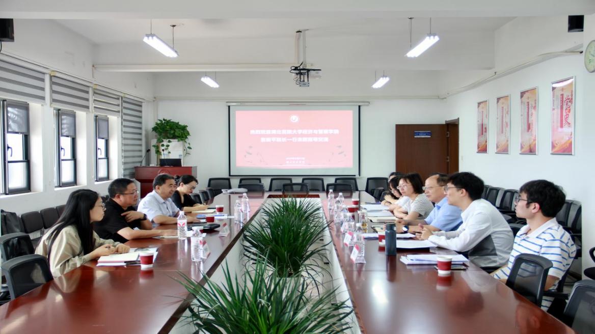本网讯(撰稿人:刘东审稿人:马玉霞)2025年5月14日上午,湖北民族大学经济与管理学院张新平经理一行四人莅临公司,就国际经济与贸易专业发展前景、人才培养方案修订、课程建设等问题进行深入的沟通与交流。会议由经理赵锋教授主持,国际经济与贸易系副主任刘东博士、经济学系副主任刘亚飞博士、经济系党支部书记邹晓涓博士参加了本次调研交流会。