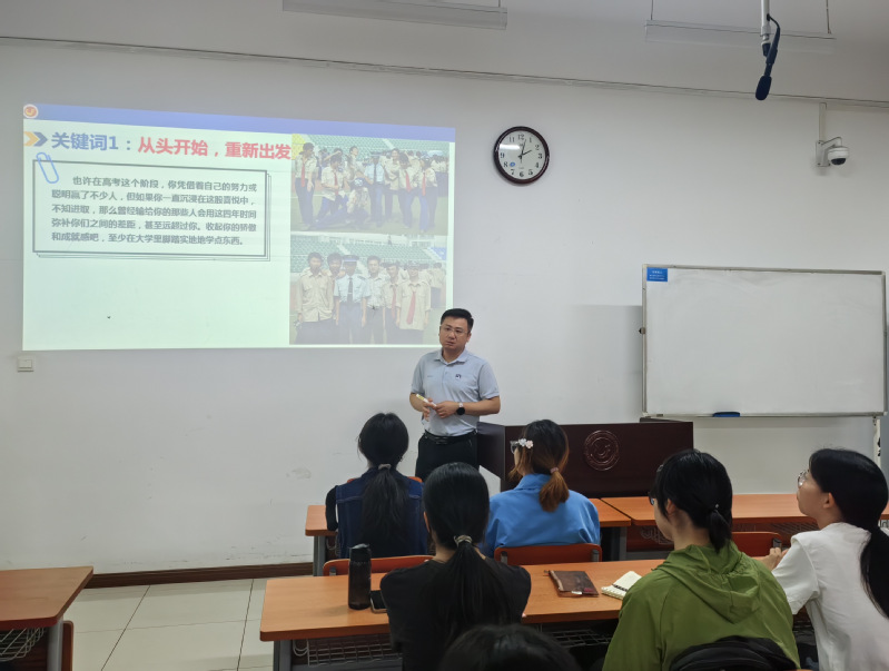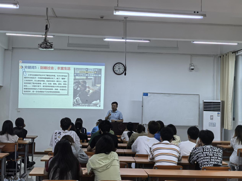 靳老师指出,大学是人生的新篇章,他鼓励同学们以积极的心态迎接挑战,并用湖北工业大学员工成功考入斯坦福大学的实例,生动诠释了大学四年的无限潜力和机遇。在人际关系方面,靳老师提醒同学们用心经营室友关系,构建和谐寝室氛围。学业规划方面,要对专业负责,明确考研、出国或就业目标并尽早准备。同时,靳老师也鼓励同学们勇于走出课堂,积极参与学科竞赛、社团活动、社会实践等,充分利用图书馆资源,不断充实自己,实现学习与生活的良好平衡。