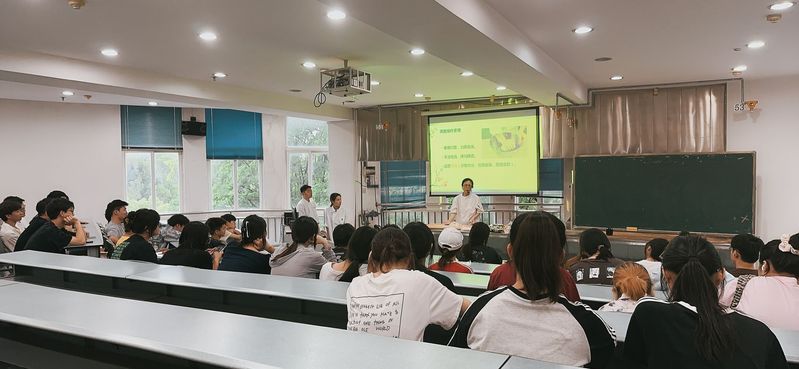 课程第一阶段,同学们前往阶梯教室进行理论学习。烹饪老师通过图文并茂的课件,详细讲解了和面、揉面、切箕、擀面、包馅的注意要点,并示范了标准操作流程,帮助同学们了解了包饺子的基本技巧。