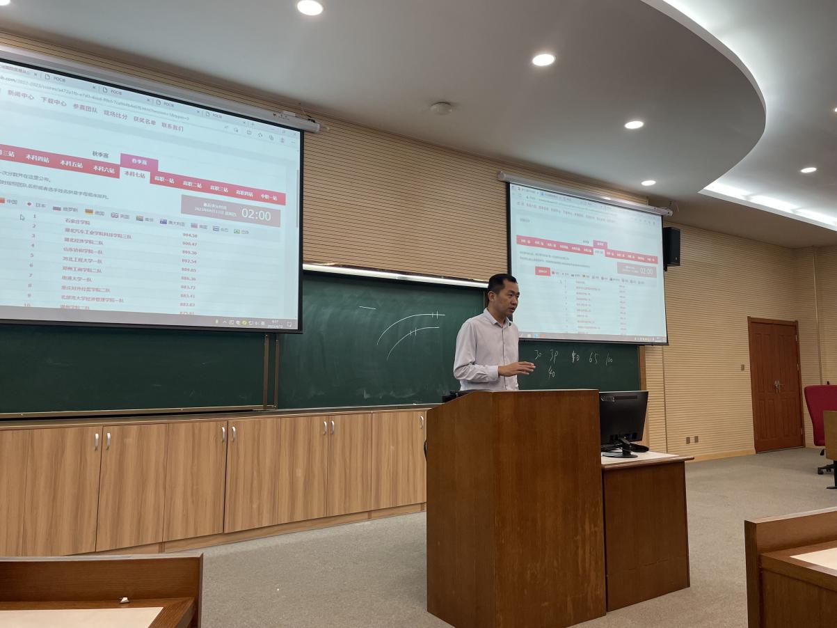 周翔老师向院领导一行介绍了赛况,目前本院参赛队伍表现良好,成绩暂居小组第一,状态良好,还在持续努力。他也提出,参赛员工的上课时间与比赛存在一定冲突,希望学校和学院能为员工参加学科竞赛提供更多的支持,进一步加大对员工参赛的支持力度。