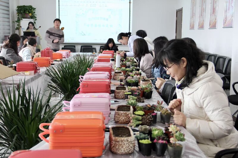 最令人期待的动手实践环节随即展开。老师们纷纷化身“绿手指”,挑选心仪的多肉品种和造型别致的小花盆,在讲师的巡回指导下,充分发挥创意与巧思。铺石、填土、栽种、装饰……每一步都凝聚着专注与用心。活动现场气氛热烈而温馨,欢声笑语不断,老师们在相互交流与协作中,暂时忘却了工作的繁忙,享受着动手创造的纯粹快乐。