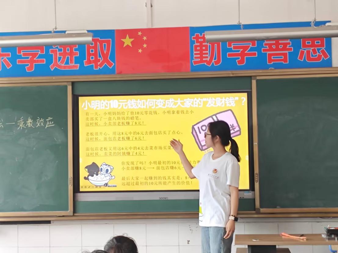 课堂上,志愿者吕鹤鸣以“凯恩斯和他的经济魔法”为主题,结合山区儿童生活实际,用“小明的10元钱”、“金币流水线”等趣味案例来辅助孩子们理解“乘数效应”等经济学概念,掌握税收与政府宏观调控等经济学原理;志愿者李名扬带领山区儿童开启了一场“亚当·斯密的奇妙经济学之旅”,用交换玩具以及合作折纸的小游戏与孩子们一起探索自由贸易和劳动分工的重要性;志愿者刘漫清在班级中开展了模拟水果贸易,让孩子们在模拟生产和交换中理解了大卫·李嘉图“比较优势”与“机会成本”的重要性。
