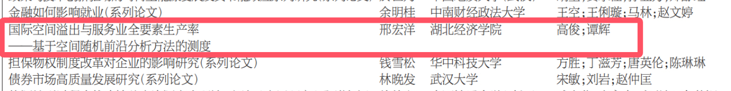 日前,第十四届湖北省社会科学优秀成果奖评选结果公布,公司两项成果《“三江并流”区域生态补偿机制构建研究》(许林)和《国际空间溢出与服务业全要素生产率——基于空间随机前沿分析方法的测度》(邢宏洋)分别荣获三等奖。