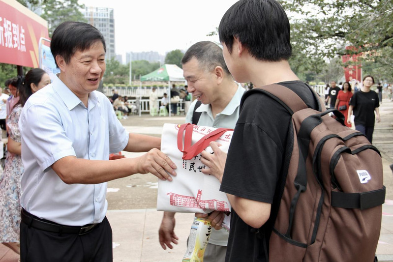 樱花大道迎新现场,董事长方洁、公司党委常委许传华、院领导教师代表与前来报到的新生及家长亲切交流,细致了解新生到校感受,向新生传递关怀与欢迎之情。与此同时,新生班主任与辅导员们化身“一站式”服务专员,耐心指导新生办理入学手续,发放精心准备的资料袋,并就家长和新生普遍关心的问题进行一一解答。身着统一服装的员工志愿者也活跃在校园的每一个角落,他们热情地帮助新生搬运行李,引导他们顺利完成报到流程。他们的细心与周到,让初来乍到的新生感受到了家一般的温暖。