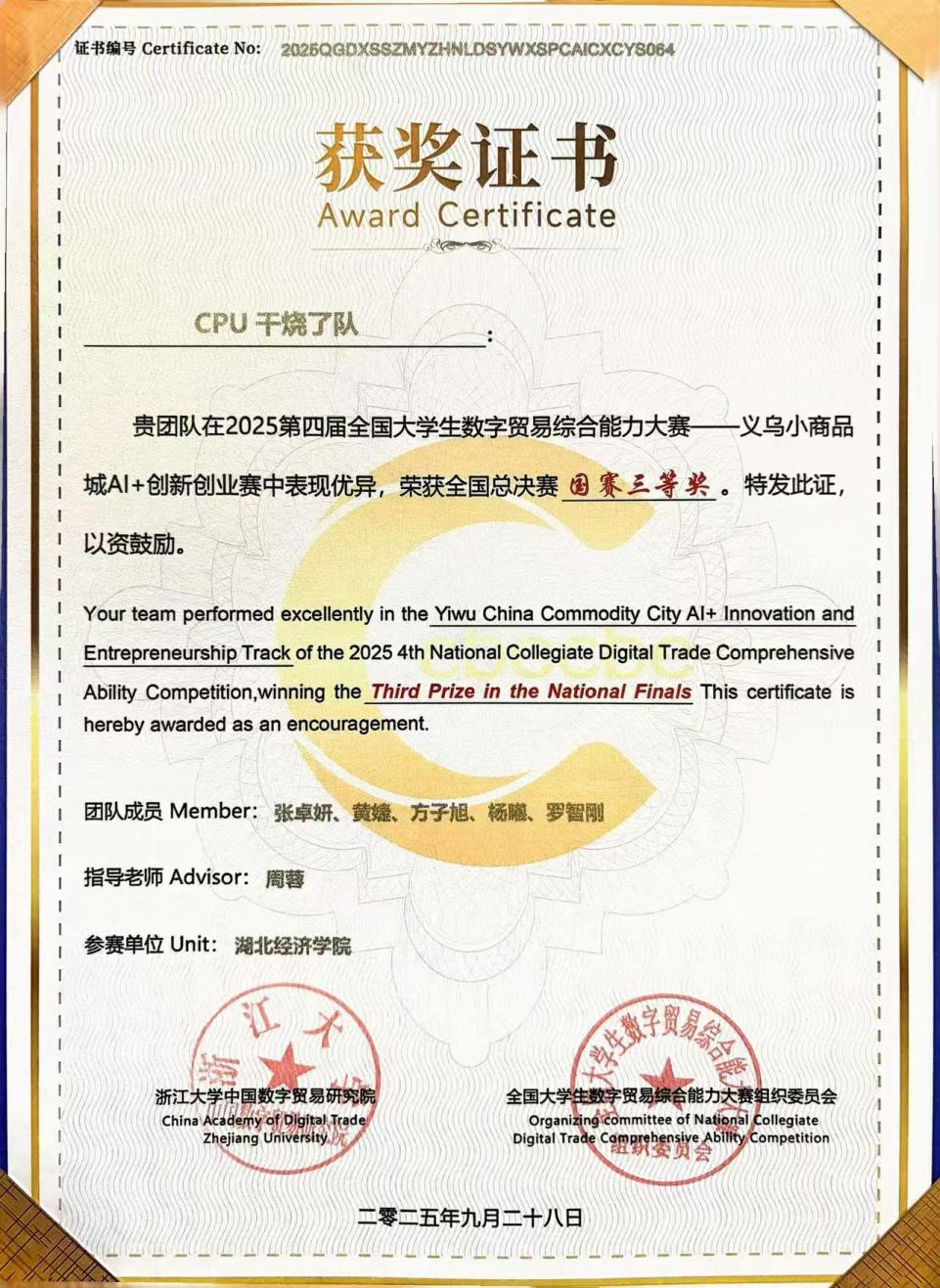 此次获奖是学院深化“以赛促学、产教融合”育人理念的生动印证。作为学校新财经改革的核心院系,学院始终以全国性高水平赛事为抓手,通过本科生导师制、跨境电商实训基地等平台,推动数字技术与贸易专业深度融合。未来,学院将继续以全国性权威赛事为纽带,深化校政企协同合作,持续培养适应数字经济时代需求的实战型人才,助力学校打造数字贸易人才培养高地。