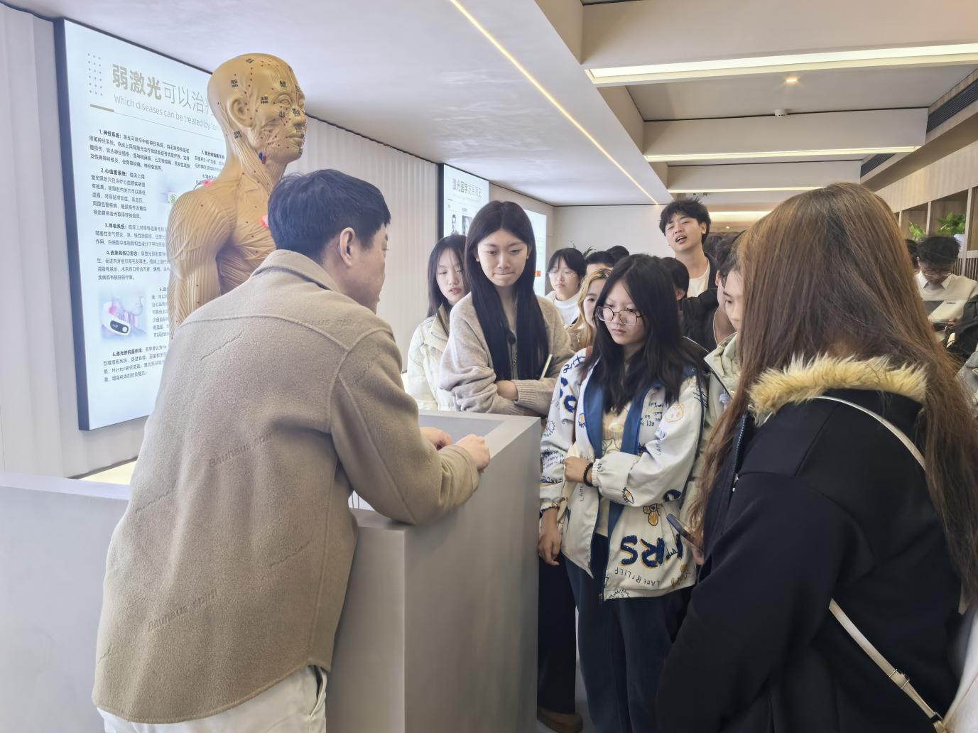 在参观企业过程中,光盾科技企业代表向员工们详细介绍了激光技术在医疗中的应用原理以及激光设备对人体健康管理的功效,并向同学们展示了企业生产、研发的各类弱激光医疗设备。这类产品在心血管、免疫系统等方面发挥着辅助治疗作用,越来越多地被应用于家庭和医疗机构中,广受消费者好评。