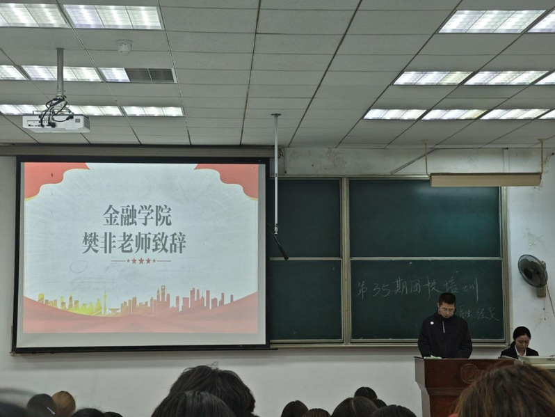 开班仪式在庄严雄壮的国歌与朝气蓬勃的团歌声中正式拉开帷幕。金融学院团委书记樊非以视频为引,为学员们生动讲授了“开学第一课”。他带领大家重温了抗日战争的辉煌胜利及其深远意义,并深刻指出,青年一代必须从这段厚重的历史中汲取智慧与力量,以奋斗为斧,劈开未来新征程,奋力开创属于新时代的美好未来。