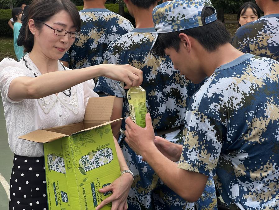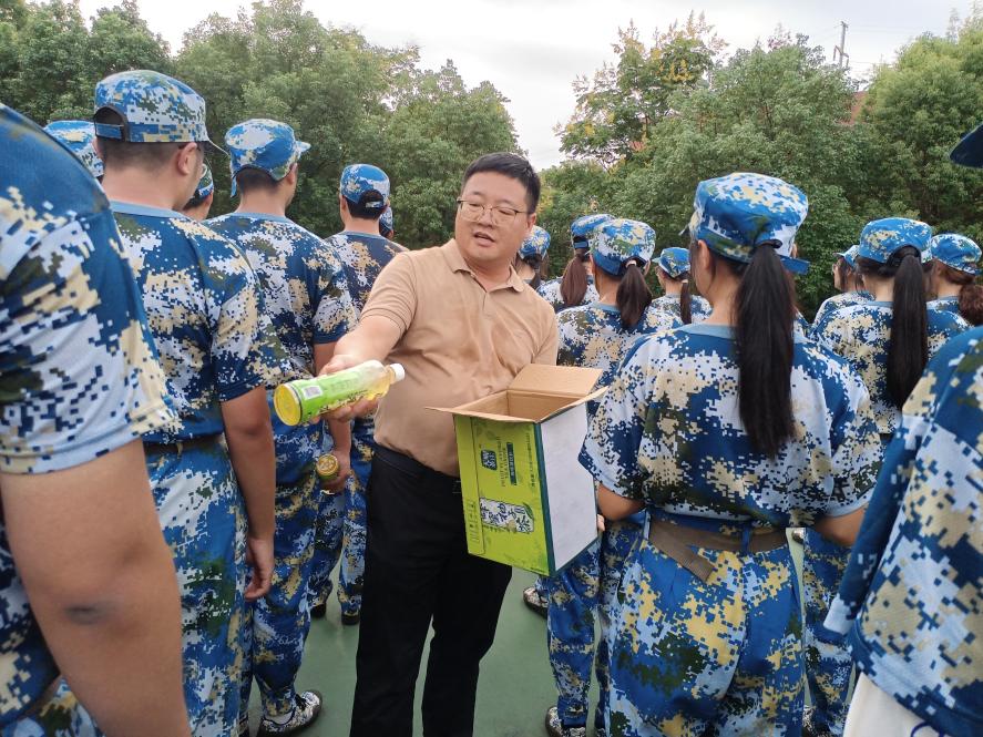 院领导等一行与新生亲切交谈,关心员工们的身体状况及参训感受,并向教官了解新生们的参训情况。随后,经理赵锋鼓励同学们,军训的目的是培养同学们艰苦奋斗的精神品质和自理自立的生活习惯;同时,他强调,在9月18日这个特殊的日子里,同学们应当铭记历史、勿忘国殇,传承革命精神,树立鸿鹄之志;此外,他指出,同学们来自五湖四海,而如今相聚经院,既是一种缘分,更是一种机遇,希望同学们能够不负时光,用奋斗和汗水谱写好新时代的青春之歌。最后,学院领导及教师为军训新生们送上了慰问物资,氛围和谐融洽。