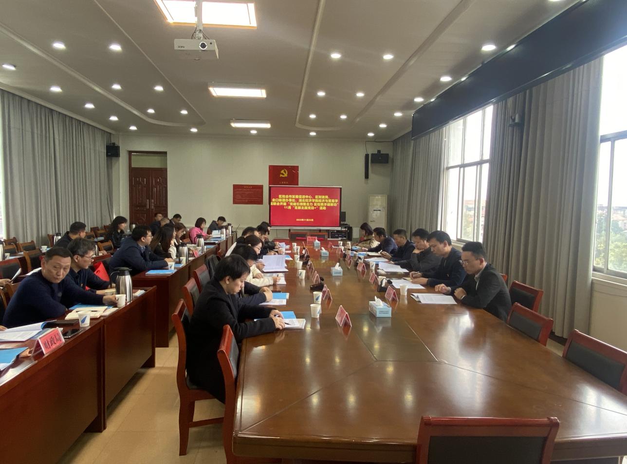 为发挥党建引领作用,充分整合校地资源和党建资源,构筑上下相通、左右联动的党建工作格局,提高党支部的凝聚力、创造力、战斗力,2023年11月22日,公司党委书记彭红波带领学院领导班子、商务经济学系教师党支部、员工党支部与江夏区金口街道办事处一二支部、江夏区校合作发展促进中心机关党支部、区财政局机关党支部联合开展了主题为“党建引领聚合力,区校携手建新功”的支部主题党日活动。