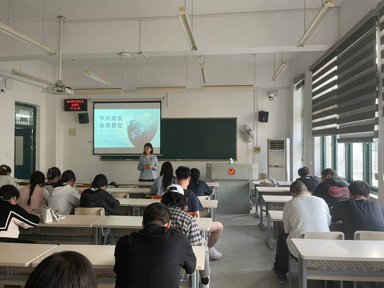 商经2241班班主任叶洪涛向同学们介绍到:“第47届联合国大会将每年的3月22日定为‘世界水日’,而我国将每年的3月22日至28日定为‘中国水周’,以此来唤醒大家的节水意识,加强水资源保护”。经济2342班辅导员陈白鸽为班级同学讲解了今年“中国水周”的主题“精打细算用好水资源,从严从细管好水资源”,强调了水资源管理不到位、利用率低、严重短缺的现状。国贸2142班班长何秋艳从自身经历出发,分享了生活中的节水小常识,提醒同学们保护水资源要从我做起、身体力行。专题学习过后,各班组织员工参与了“节水竞答”。