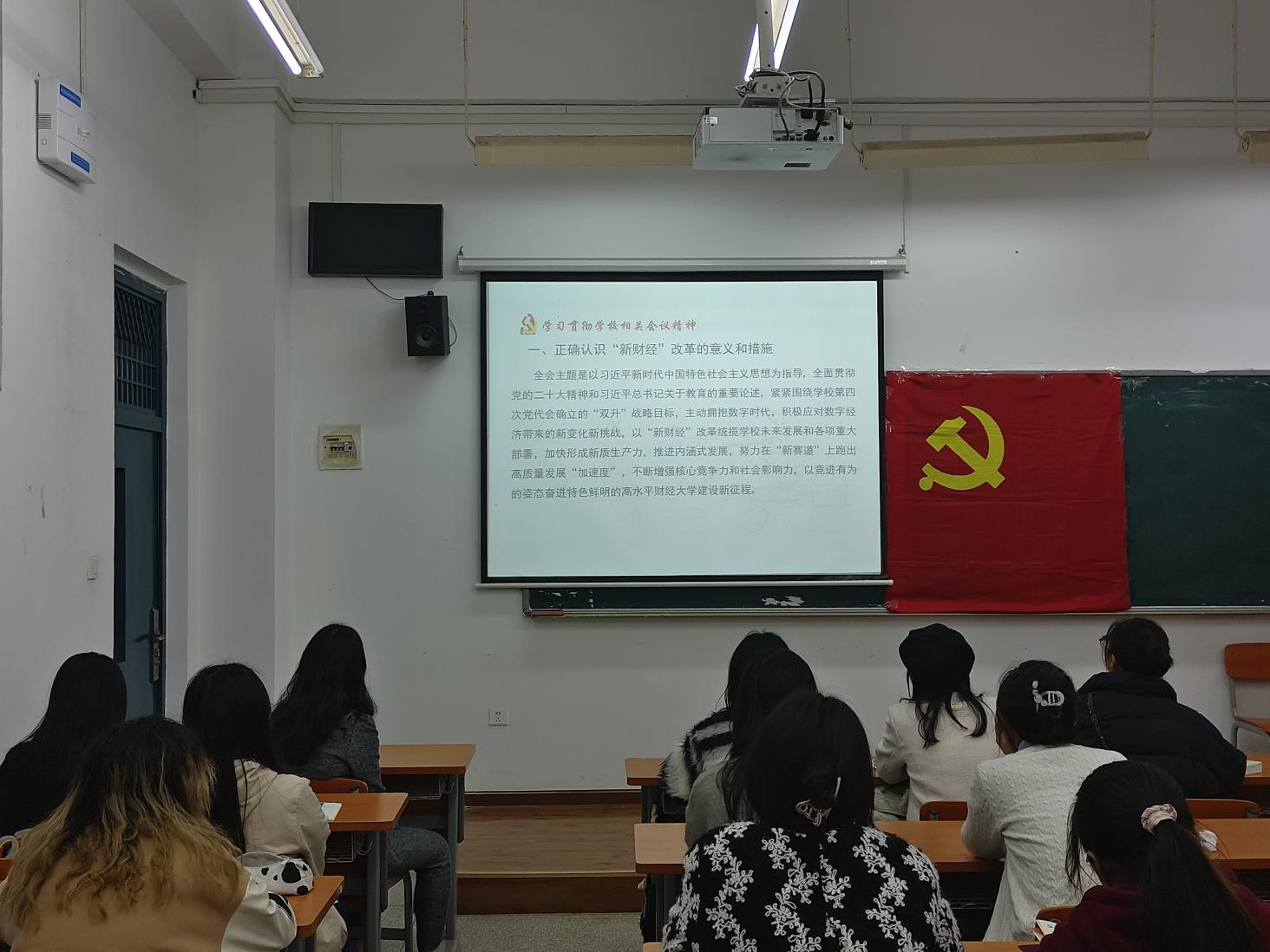 会上,全体党员同志一齐学习了两会精神、公司党委四届五次全会精神和新学期中层干部会议精神,并观看了系列视频。祝琴老师总结强调,要坚定不移用习近平新时代中国特色社会主义思想统一思想、统一意志、统一行动,坚定不移贯彻习近平总书记重要讲话精神和党中央决策部署,始终胸怀“两个大局”、心怀“国之大者”、牢记“三个务必”。全面贯彻党的二十大精神和习近平总书记关于教育的重要论述,紧紧围绕学校第四次党代会确立的“双升”战略目标,主动拥抱数字时代,积极应对数字经济带来的新变化新挑战,以“新财经”改革统揽学校未来发展和各项重大部署,加快形成新质生产力,推进内涵式发展。