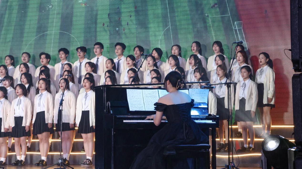 无畏探索世界,释意迎风前行;远征星辰大海,归来仍是少年。作品结合分声部合唱、独舞和钢琴演奏的形式,为全校师生带去了一场绝佳的视听盛宴,极具艺术性与专业性,广受好评与认可,展现了经贸学子的青春风貌与昂扬之姿。作品表达了对青年员工的祝福,祝愿青年学子不畏将来,跃入人海,各有风雨灿烂。